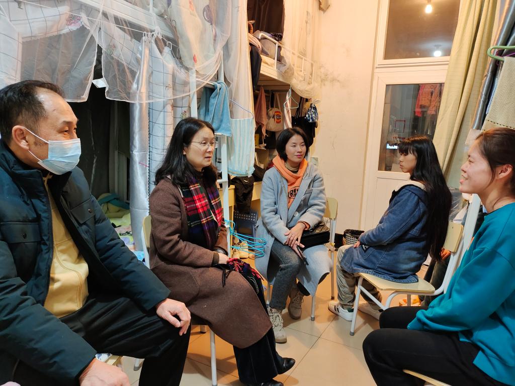 2021年11月22日晚,学校党委委员、副校长杨光在学生处处长张春霞、体育学院党委书记杨志龙、校团委副书记余家赛、体育学院辅导员董诗稳陪同下深入学生宿舍看望困难学生。